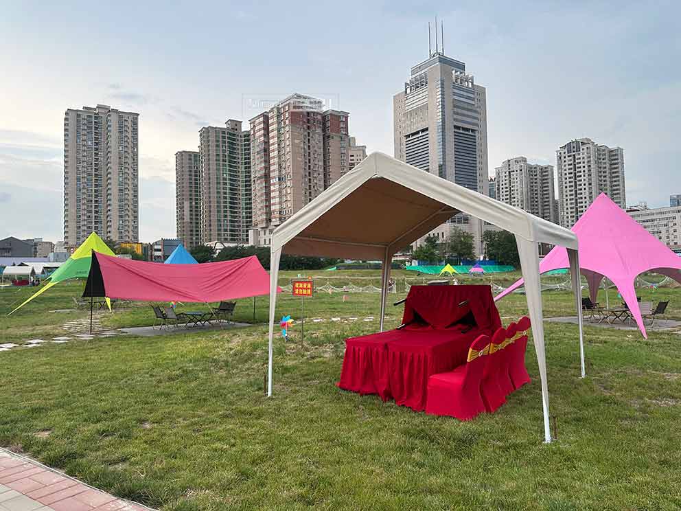白色網(wǎng)紅帳篷是體驗(yàn)課堂的核心載體。鄭州帳篷桁架出租選用的帳篷頂呈人字形,白色篷布質(zhì)地輕盈卻不透光,既能隔絕商城與社區(qū)的嘈雜,又能營造出靜謐的探索氛圍。